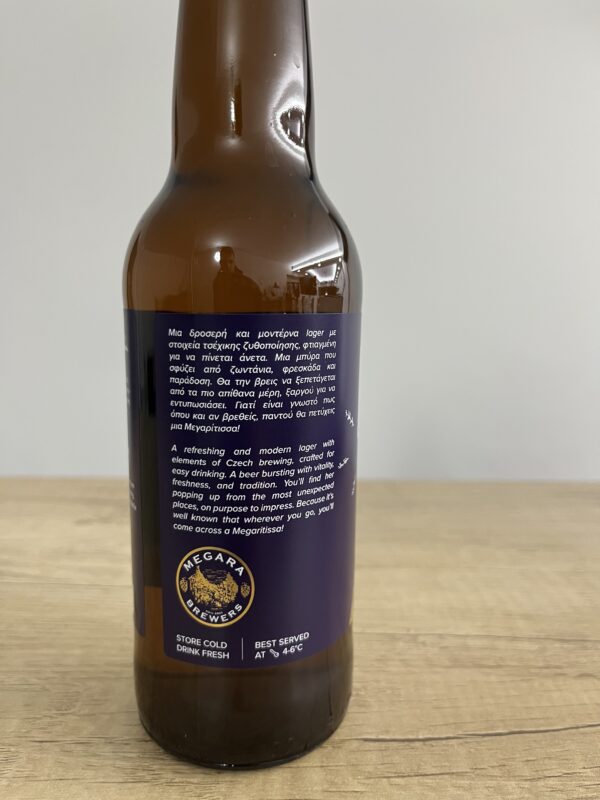 Μια δροσερή και μοντέρνα lager με στοιχεία τσέχικης ζυθοποίησης, φτιαγμένη για να πίνεται άνετα. Μια μπύρα που σφύζει από ζωντάνια, φρεσκάδα και παράδοση. Θα την βρεις να ξεπετάγεται από τα πιο απιθανά μέρη, έτοιμη να εντυπωσιάσει. Γιατί είναι γνωστό πως όπου και αν βρεθείς, παντού θα πετύχεις μια Megaritissa!